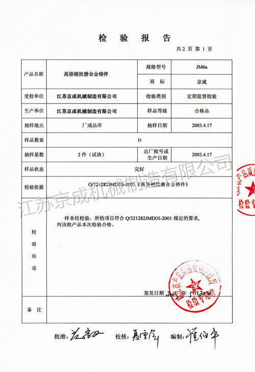 您好,歡迎訪問江蘇京成機械制造有限公司官網(wǎng)!公司主營產(chǎn)品:鍋爐配件|耐磨耐熱鑄鋼|金屬陶瓷復合磨輥。