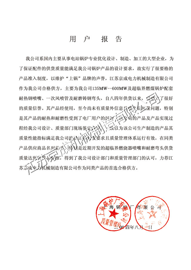 您好,歡迎訪問江蘇京成機(jī)械制造有限公司官網(wǎng)!公司主營產(chǎn)品:鍋爐配件|耐磨耐熱鑄鋼|金屬陶瓷復(fù)合磨輥。